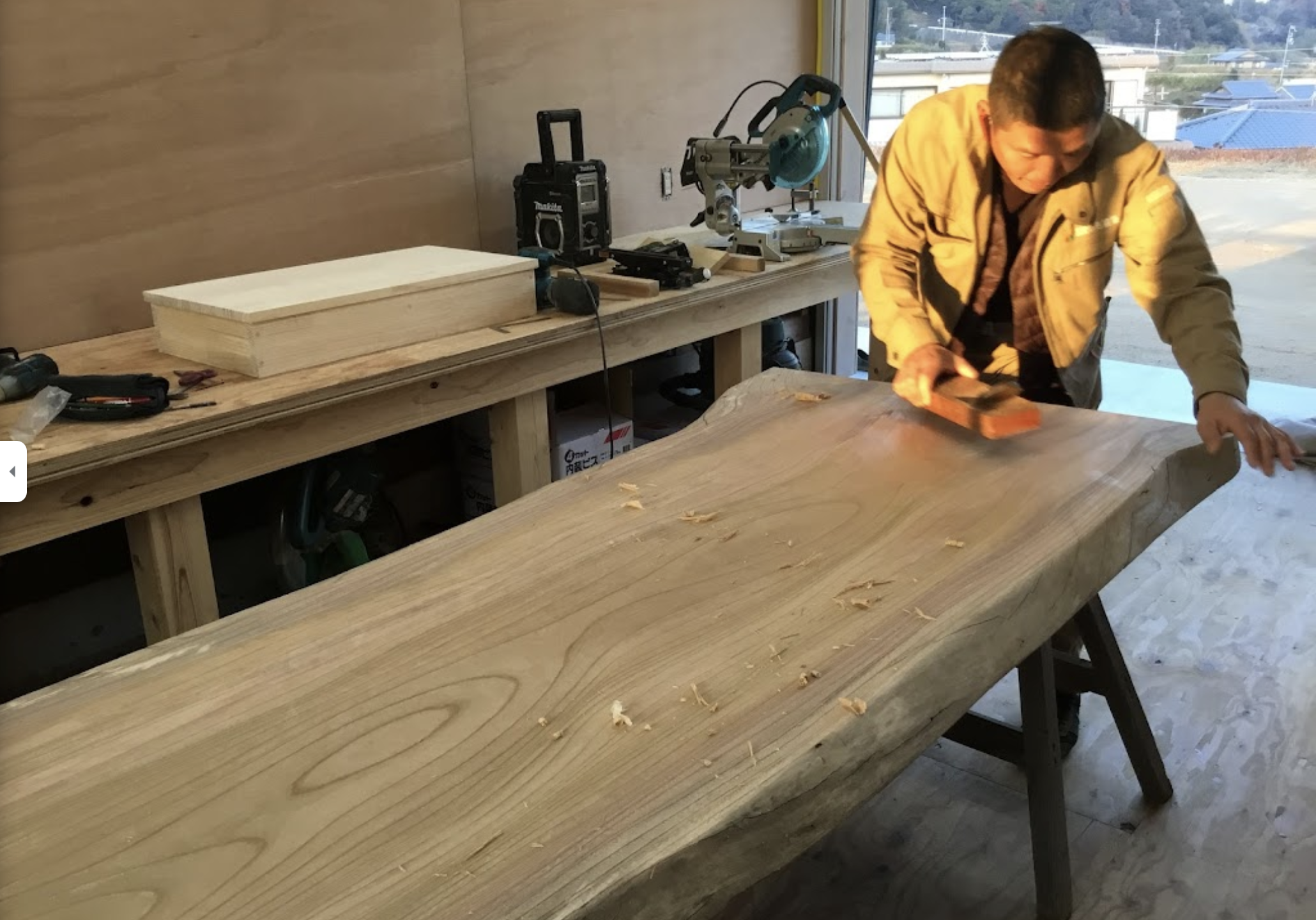 お部屋の主役、1枚板のダイニングテーブルを製作。2つと無い、世界に1つだけのテーブルに仕上げました。